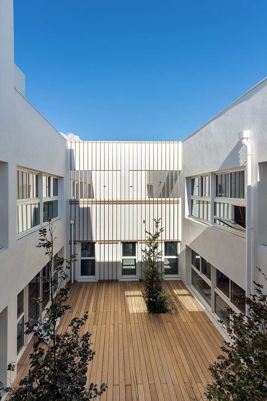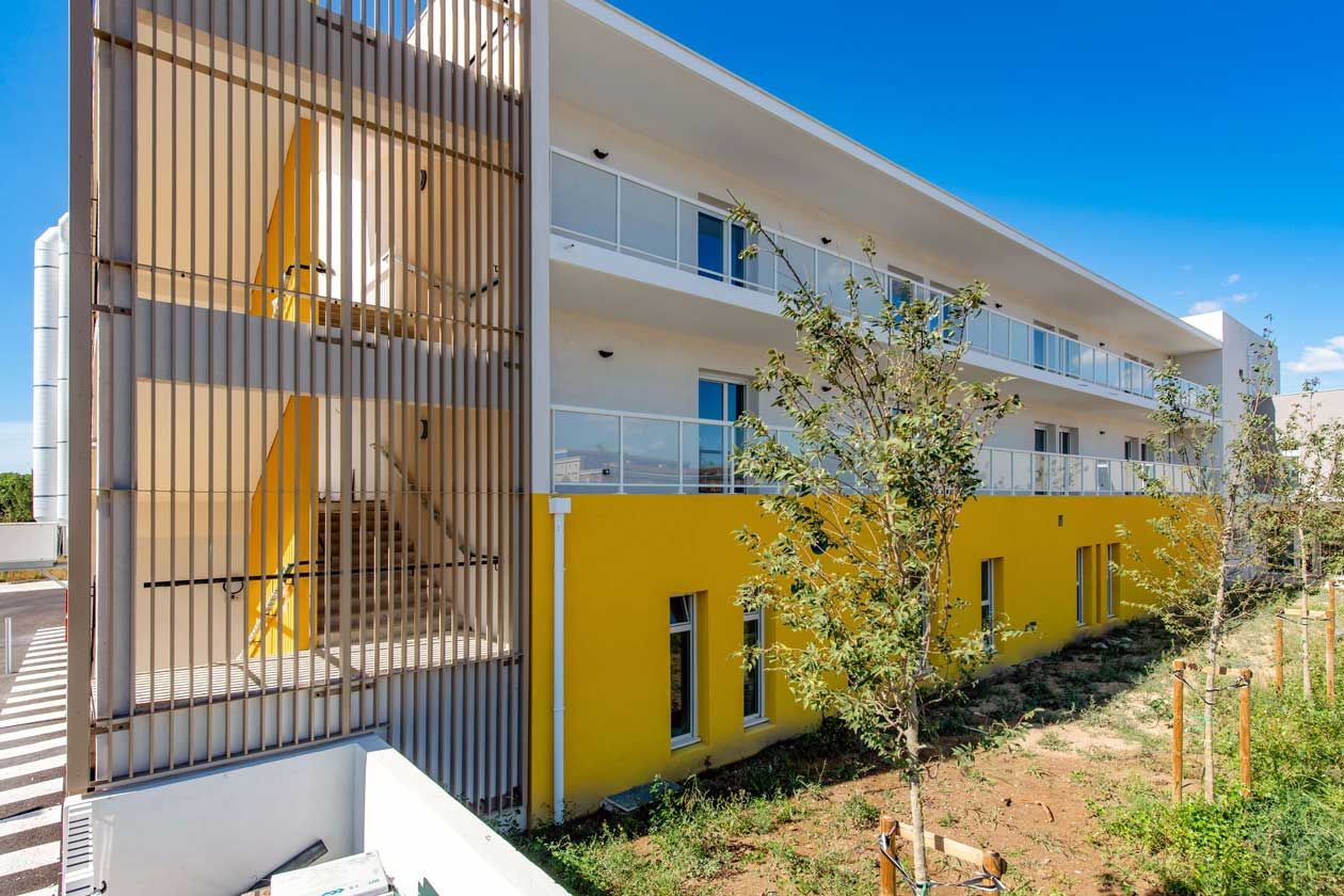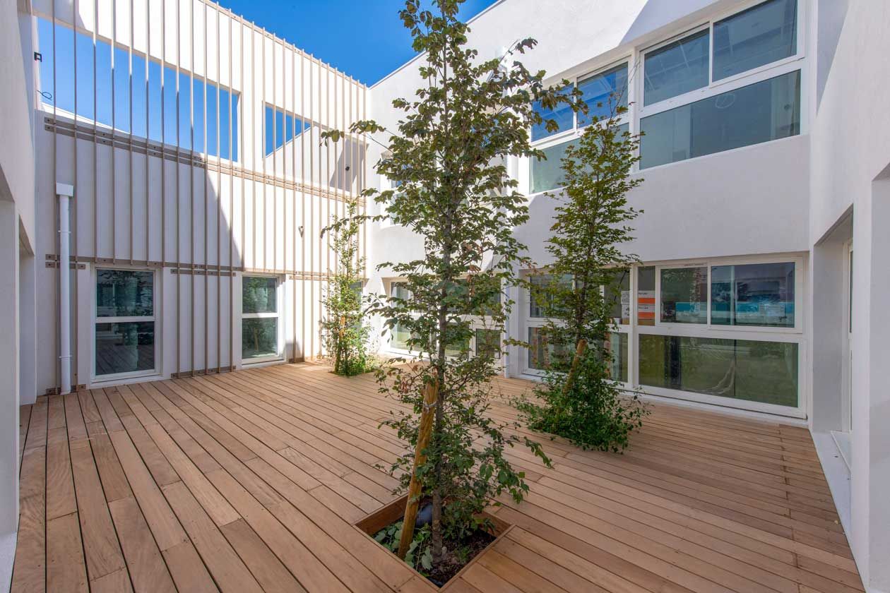 L’architecture de l’établissement se veut moderne et accueillante avec une ouverture sur l’extérieur par le biais de bais vitrées et de grands espaces de vie.